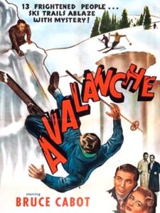 The 1946 action crime thriller film Avalanche stars Bruce Cabot and Roscoe Karns as US Treasury agents on the trail of a tax evader, getting involved in a series of murders at a ski resort in the mountains.