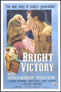 The 1951 romantic drama film Bright Victory stars Arthur Kennedy as a GI blinded by a German sniper’s bullet in 1943 who struggles to come to terms with his disability.