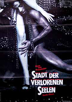 Rosa von Praunheim’s 1983 German queer-punk musical film City of Lost Souls [Stadt der Verlorenen Seelen] is performed by drag queens, travesty artists and transgender people, and features Angie Stardust and Jayne County.