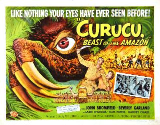 Director Curt Siodmak’s 1956 Universal International Pictures jungle adventure/ monster movie film Curucu, Beast of the Amazon stars John Bromfield, Beverly Garland, and Tom Payne. Universal International Pictures made some rotten low budget adventure flicks in the Fifties, and this is certainly another one of the worst. But it’s got Amazon jungle Eastmancolor cinematography and Beverly Garland on its side.