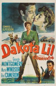 Director Lesley Selander’s 1950 20th Century Fox Technicolor Western film Dakota Lil is based on a story by Frank Gruber, and stars Marie Windsor, George Montgomery, Rod Cameron, John Emery, Wallace Ford and Jack Lambert.