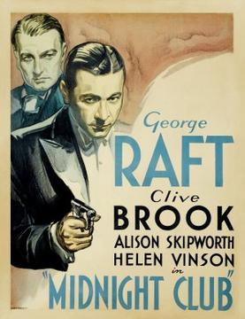 Director Alexander Hall’s 1933 American pre-Code crime drama film Midnight Club stars George Raft, Clive Brook, Helen Vinson, Alison Skipworth, Guy Standing, and Alan Mowbray.