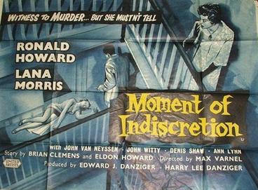 The suspenseful and commendably acted 1958 British second feature crime drama film Moment of Indiscretion stars Ronald Howard, Lana Morris, John Van Eyssen, Denis Shaw, and Ann Lynn.