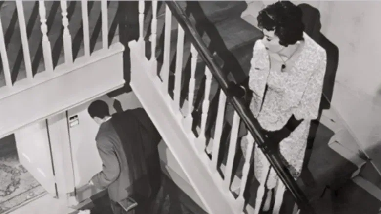Lana Morris stars as Janet Miller, a married woman who fails to report to the police that she has witnessed a man stabbing a woman to death, and is then charged with murder. She made a secret, one-off, supposedly innocent assignation with one-time fiance Eric (John Stone), who still loves her. Janet is charged after her monogrammed handkerchief and spare house key, dropped in a panic, are discovered at the crime scene, the stairway of the same building where she has met her ex-fiancé for a platonic goodbye as he leaves England for ever. Ronald Howard also stars as her jealous lawyer husband John, who is understandably rattled by his wife’s lies and breaking her promise never to see her ex again, but nevertheless rallies round to try to track down the real killer.