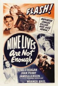Director A Edward Sutherland’s 1941 Warner Bros comedy drama film Nine Lives Are Not Enough stars Ronald Reagan, Joan Perry, James Gleason, Howard da Silva, Faye Emerson and Edward Brophy.
