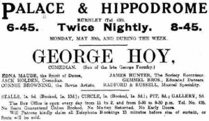 George Formby OBE was born George Hoy Booth (26 May 1904 – 6 March 1961). He made his first professional appearance in a two-week run at the Hippodrome in Earlestown, Lancashire, on 21 March 1921, billed as George Hoy, using his mother’s maiden name.