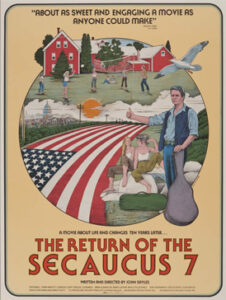 Writer/ director John Sayles’s 1980 American independent drama film Return of the Secaucus Seven stars Bruce MacDonald, Maggie Renzi, Adam LeFevre, Maggie Cousineau, Gordon Clapp, Jean Passanante, Karen Trott, Mark Arnott, David Strathairn, and John Sayles.