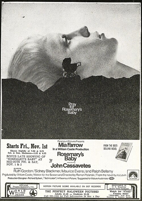 Rosemary’s Baby ***** (1968, Mia Farrow, John Cassavetes, Ruth Gordon, Sidney Blackmer, Ralph Bellamy, Maurice Evans) – Classic Movie Review 376