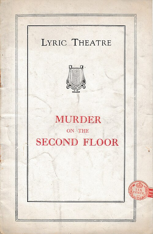 The play Murder on the Second Floor premiered in London’s West End in 1929 at the Lyric Theatre, Shaftesbury Avenue. It was written by Frank Vosper, who also played the role of Hugh Bromilow (Bruce Lester in the film). It then transferred to Broadway, opening at the Eltinge 42nd Street Theatre on 11 September 1929, in which Laurence Olivier played Hugh Bromilow.