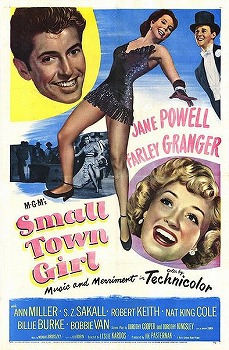 MGM’s 1953 Technicolor musical film Small Town Girl stars Jane Powell, Farley Granger, Bobby Van, Ann Miller, Robert Keith, Billie Burke, S Z Sakall, Fay Wray, Nat King Cole, and Chill Wills. There’s no arguing with the cast or the sense of fun.