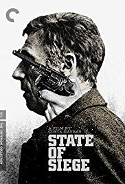 State of Siege [État de siège] is directed by Costa-Gavras, runs 120 minutes, is made by Reggane Films, Cinema 10, Unidis, Euro International Film, and Dieter Geissler Filmproduktion, is distributed by Cinema 5 (US) and Hemdale (UK), is written by Costa-Gavras and Franco Solinas (original scenario) is shot in Eastmancolor by Pierre-William Glenn, is produced by Léon Sanz, Jacques-Henri Barratier and Jacques Perrin, is scored by Mikis Theodorakis and is designed by Jacques D’Ovidio.
