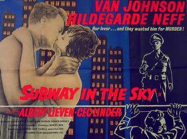 Director Muriel Box’s 1959 British crime thriller film Subway in the Sky stars Van Johnson, Hildegard Knef (billed as Hildegarde Neff), Albert Lieven, Katherine Kath, Cec Linder, Edward Judd, Vivian Matalon, and Carl Jaffe.