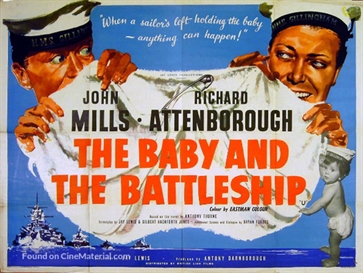The Baby and the Battleship is directed by Jay Lewis, runs 96 minutes, is made by Jay Lewis Productions, is released by British Lion (UK) and Distributors Corporation of America , is written by Richard De Roy (story and screenplay), Jay Lewis (screenplay), Gilbert Hackforth-Jones and Bryan Forbes (additional scenes and dialogue), based on the novel by Anthony Thorne, is shot in Eastmancolor by Harry Waxman, is produced by Jay Lewis (uncredited) and Anthony Darnborough, is scored by James Stevens and Humphrey Searle, and is designed by John Howell.
