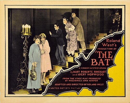 The play The Bat was based on Mary Roberts Rinehart’s own 1908 mystery novel The Circular Staircase, first filmed in 1915 by the Selig Polyscope Company before Mary Roberts Rinehart’s 1920 Broadway theatre version. The 1915 silent version of The Bat is considered a lost film.