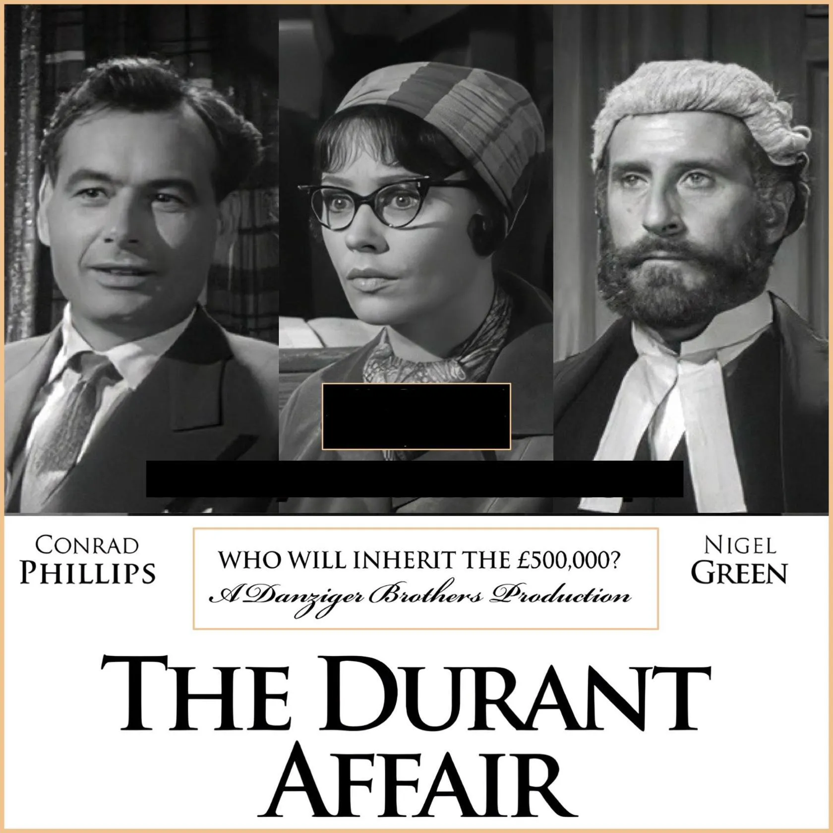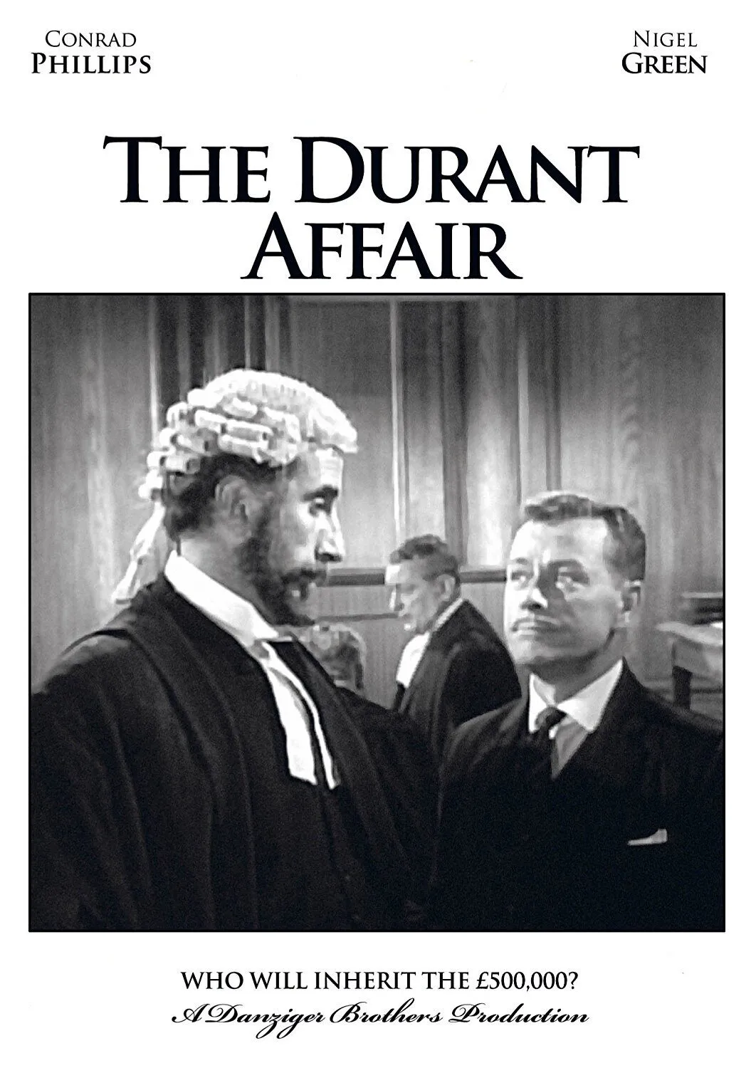 The 1962 British second feature courtroom drama film The Durant Affair stars Jane Griffiths as a woman left an unexpected fortune, and Conrad Phillips and Nigel Green as opposing counsels who contest the will in court.