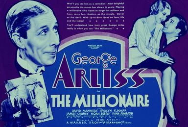 Warner Bros’1931 classic comedy drama film The Millionaire is based on a story Idle Hands by Earl Derr Biggers, and stars George Arliss, Florence Arliss, Evalyn Knapp, and David Manners.