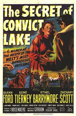 Director Michael Gordon’s 1951 20th Century Fox black and white Western film The Secret of Convict Lake is an odd movie that also boasts the oddest ensemble cast in Glenn Ford, Gene Tierney, Ethel Barrymore, Zachary Scott, Ann Dvorak, Cyril Cusack, Jeanette Nolan, Ruth Donnelly, Barbara Bates, Ray Teal, and Dale Robertson.