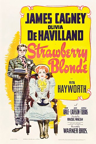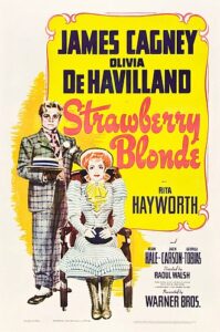 The pleasing 1941 romantic film The Strawberry Blonde stars James Cagney, Olivia de Havilland, Rita Hayworth. Dentist Biff Grimes (Cagney)’s unrequited love for society girl Virginia Brush (Hayworth) in the 1890s is told in flashback with songs of the era.