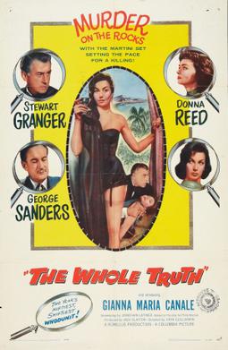 The Whole Truth is directed by John Guillermin, runs 86 minutes, is made by Romulus Films, is released by Columbia Pictures, is written by Jonathan Latimer, is shot in black and white by Wilkie Cooper, is produced by Jack Clayton, and is scored by Mischa Spoliansky, and designed by Anthony Masters.
