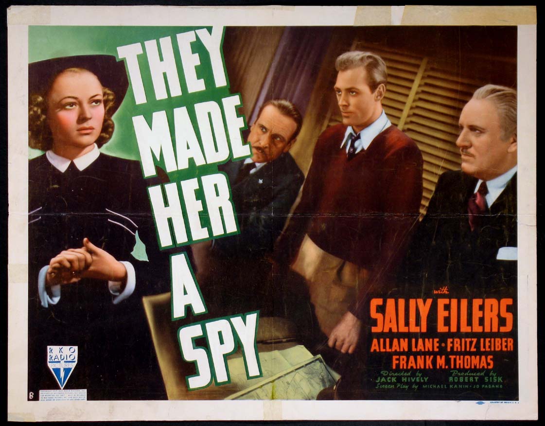 Director Jack Hively’s RKO Radio Pictures 1939 American black and white spy drama film They Made Her a Spy stars Sally Eilers, Allan Lane, Fritz Leiber, and Frank M Thomas.