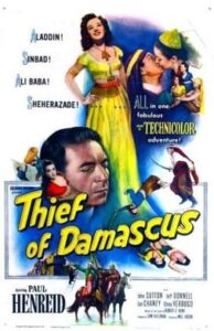 Columbia Pictures’ 1952 Technicolor adventure movie Thief of Damascus stars Paul Henreid, Lon Chaney Jr and Jeff Donnell, and features heroes Aladdin, Ali Baba, Sinbad and Sheherazade.