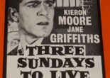 Director Ernest Morris’s 1957 Danziger Productions British black and white second feature crime thriller film Three Sundays to Live stars Kieron Moore, Jane Griffiths, Basil Dignam, with Sandra Dorne, Harold Ayer, John Stone, and Ferdy Mayne. It is decently written by the prolific and inventive Brian Clemens.
