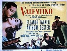 It ends up being a largely fictional account of Valentino’s life and movie career. Facts are treated with disdain and to no advantage in the best tradition of Hollywood biographies, except even more so than usual, in this fanciful tale of the Smouldering One’s ship trip from Italy to America, his romance with actress Joan Carlisle (Eleanor Parker), his spell as dishwasher and dancer, making it big in Hollywood in silent movies, his marriage to actress Lila Reyes (Patricia Medina), and his tragic early death from peritonitis at the age of 31.